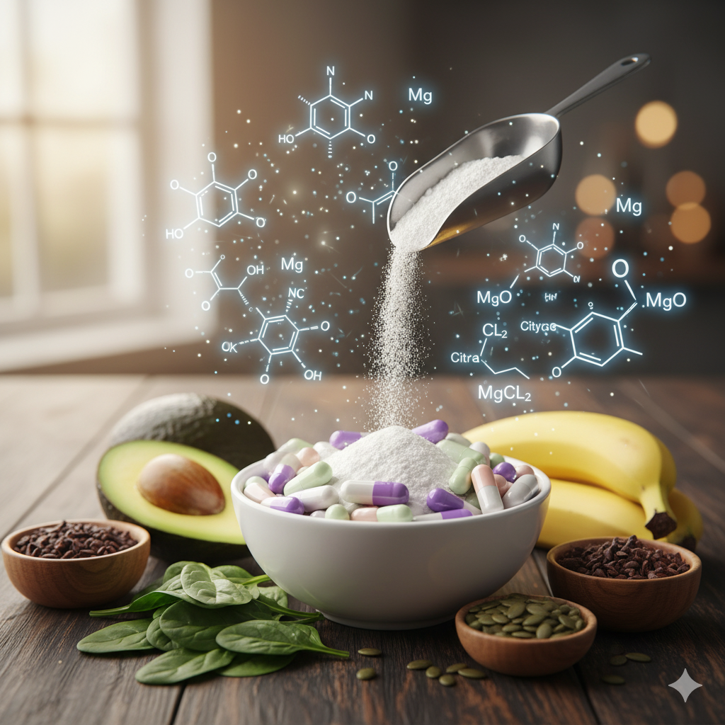 Ma kluczowe znaczenie dla prawidłowego funkcjonowania układu nerwowego. Pomaga w redukcji napięcia mięśniowego i działa relaksująco na układ nerwowy. Źródła: - migdały, orzechy brazylijskie, nasiona dyni - zielone warzywa liściaste - awokado - banany