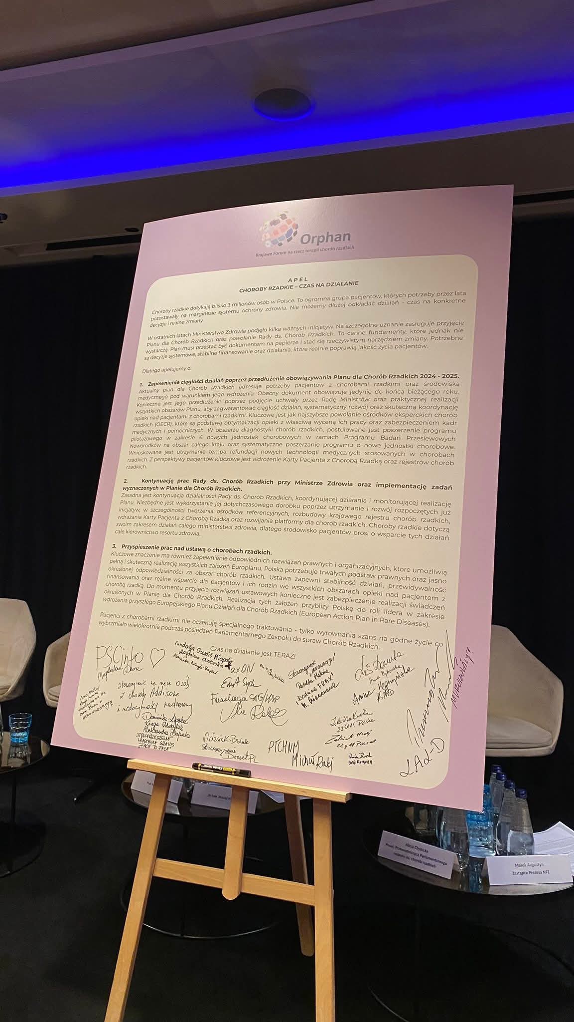 Na zakończenie spotkania razem z innymi przedstawicielami organizacji pacjenckich z całej Polski podpisaliśmy  Apel o konieczności stworzenia Ustawy dla Chorób Rzadkich