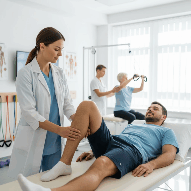 - Fizjoterapia: jak najwcześniej – bierna i czynna w miarę możliwości, w celu zapobiegania przykurczom i zanikom mięśni.