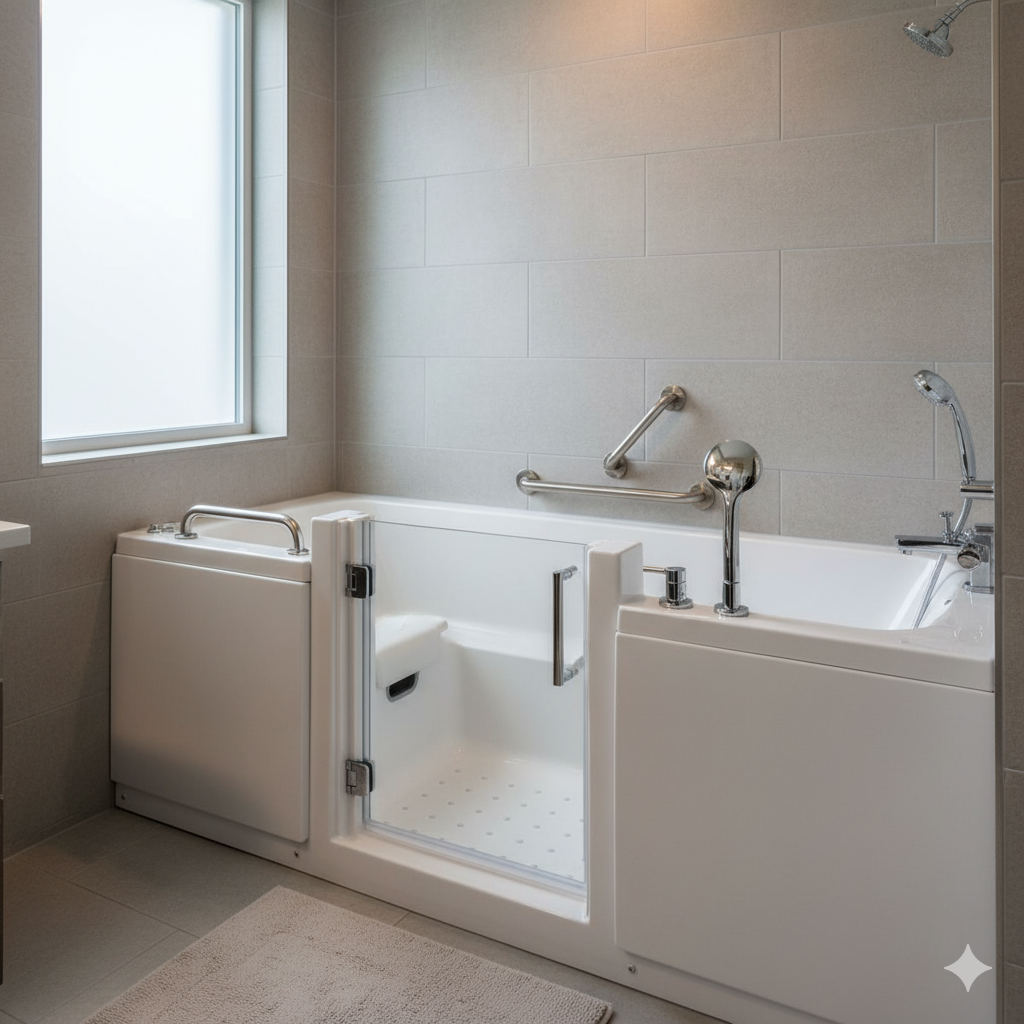 Produkt ułatwiający wejście do wanny osobom z niepełnosprawnością. Zastosowanie drzwiczek ortopedycznych pozwala na zachowanie komfortu korzystania z wanny zamiast konieczności wymiany na prysznic, minimalizując ryzyko poślizgnięć i upadków. Pozwala to użytkownikom na większą samodzielność i poprawę jakości codziennej higieny.
